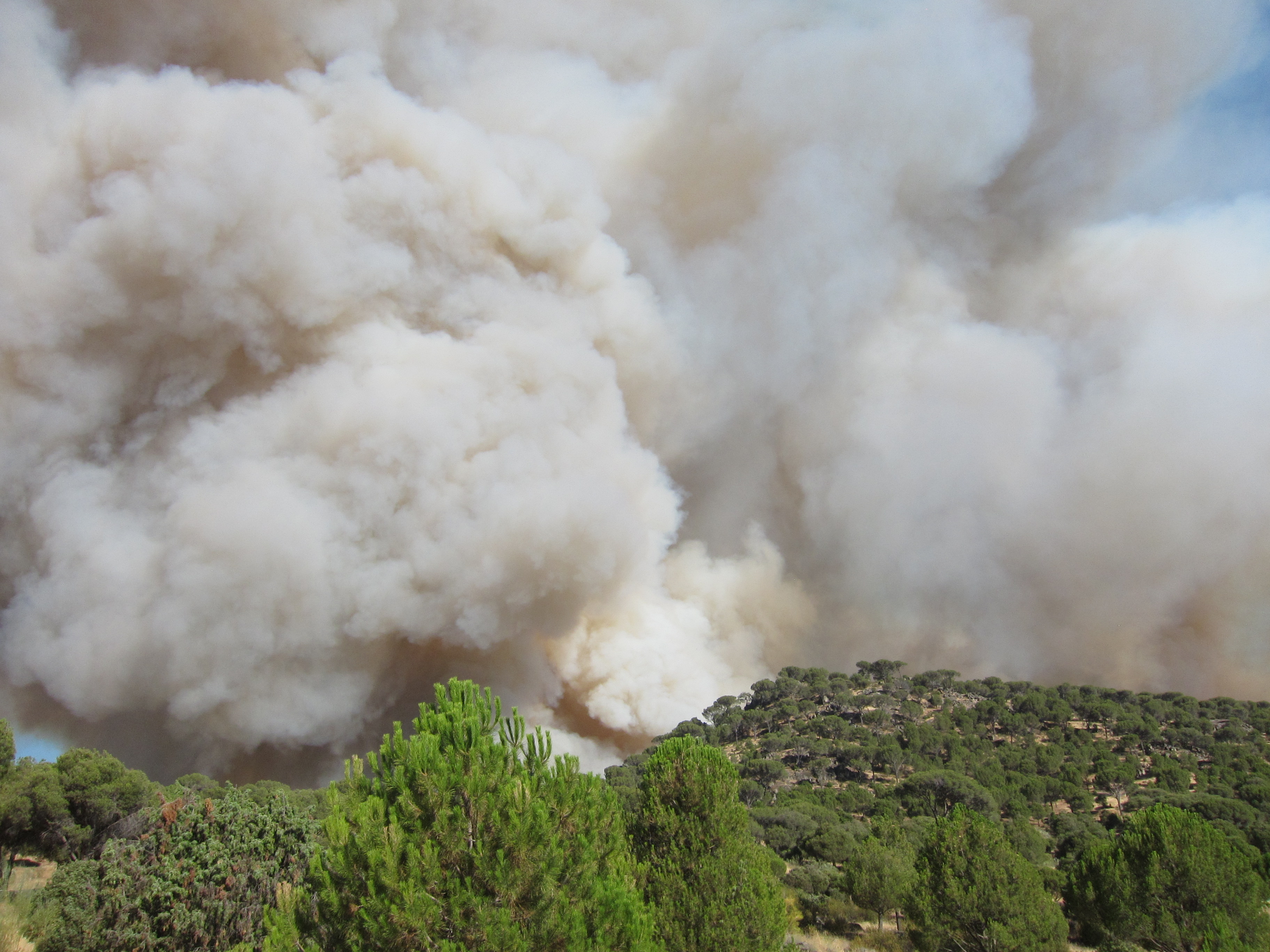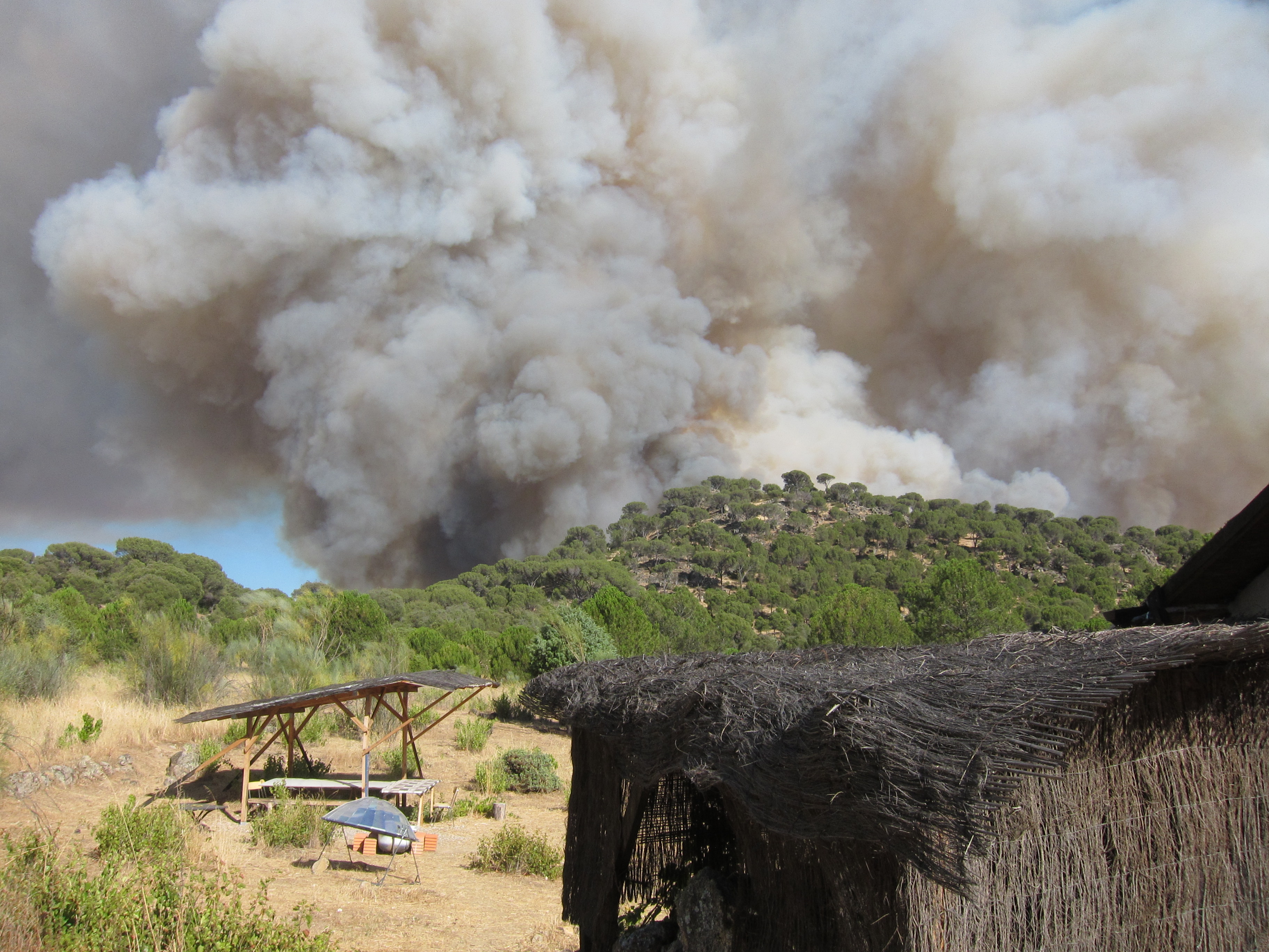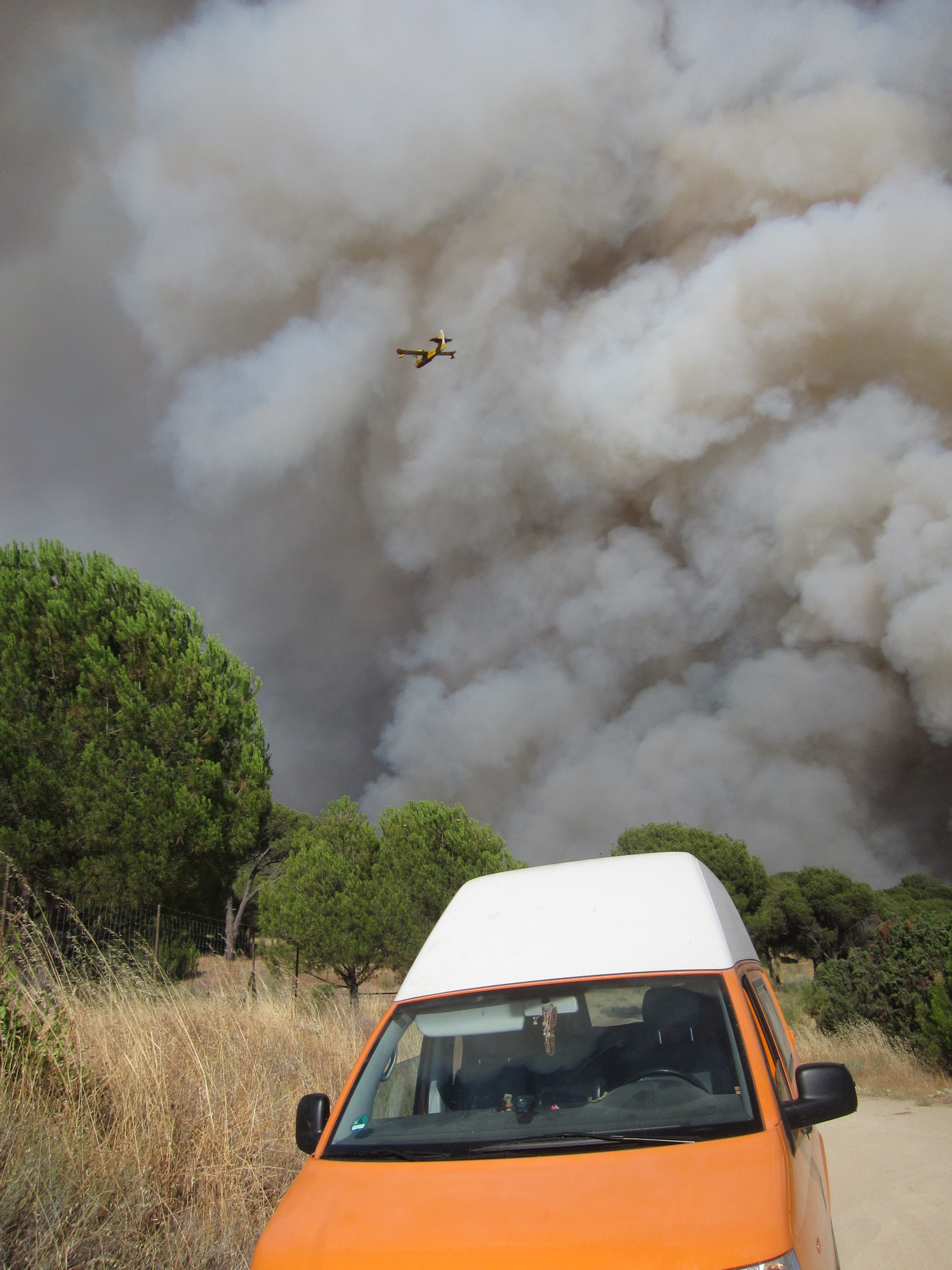 …oder besser die Wälder. Das war mein erstes Großfeuer ( die Nachrichten haben von 10 km Ausmaß gesprochen) aber was Feuer anbetrifft, sind die Spanier echte Profies. Da rückt neben der Feuerwehr auch gleich das Militär an. Es kann allerdings auch daran liegen, dass die NASA nebenan ein paar imposante Satellitenschüsseln stehen hat.