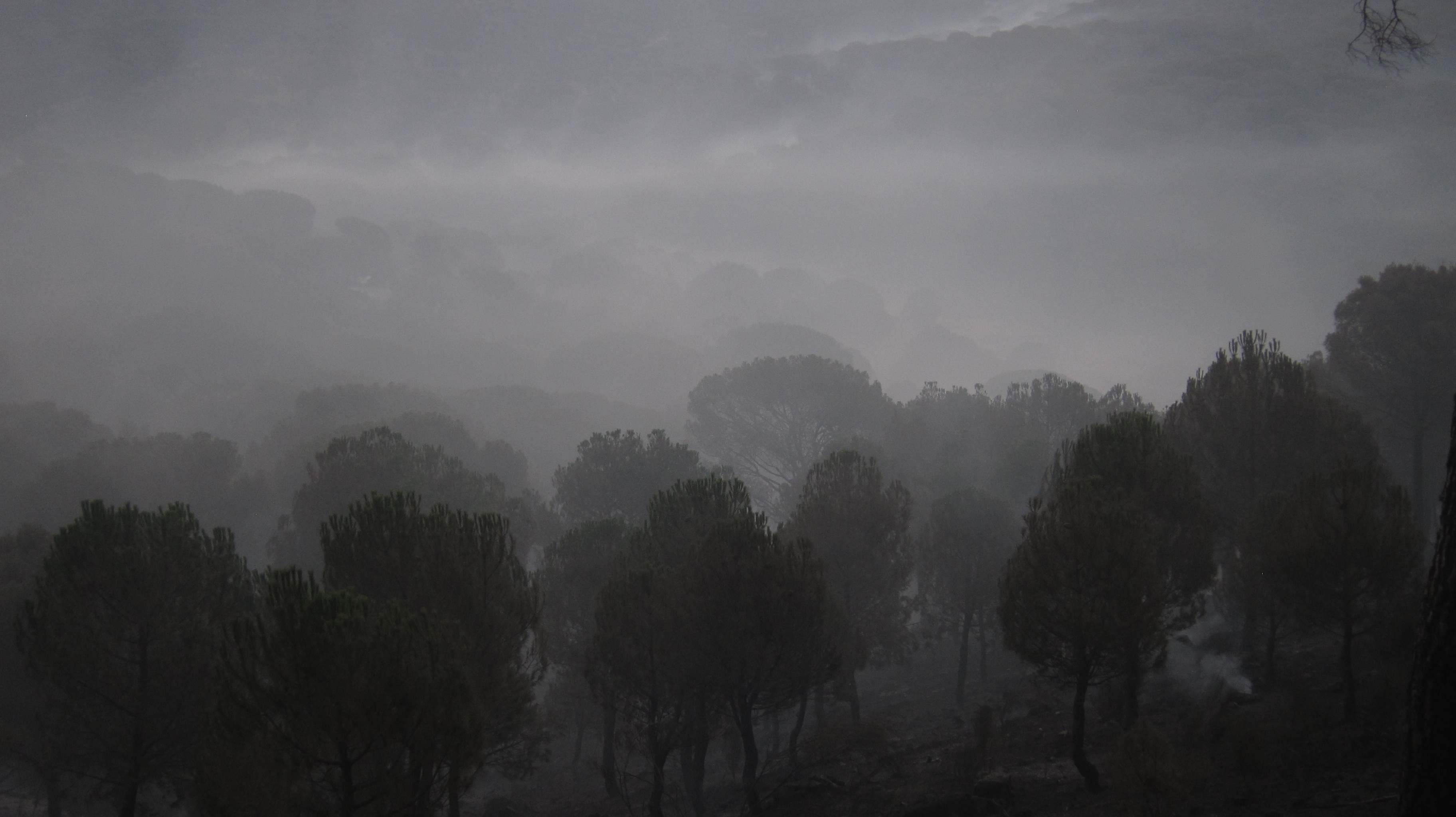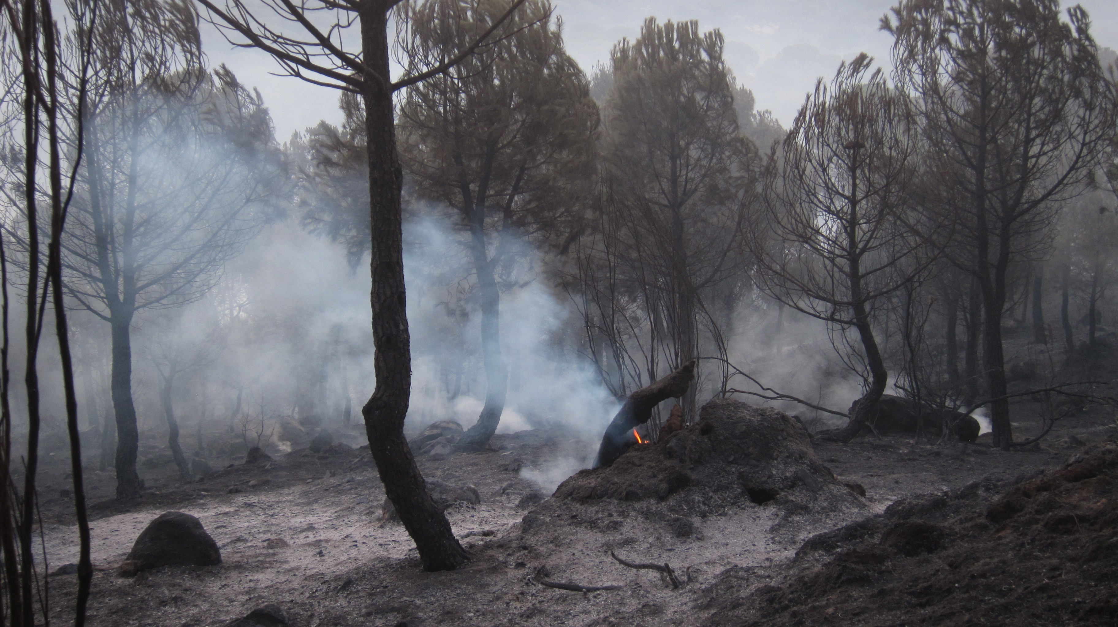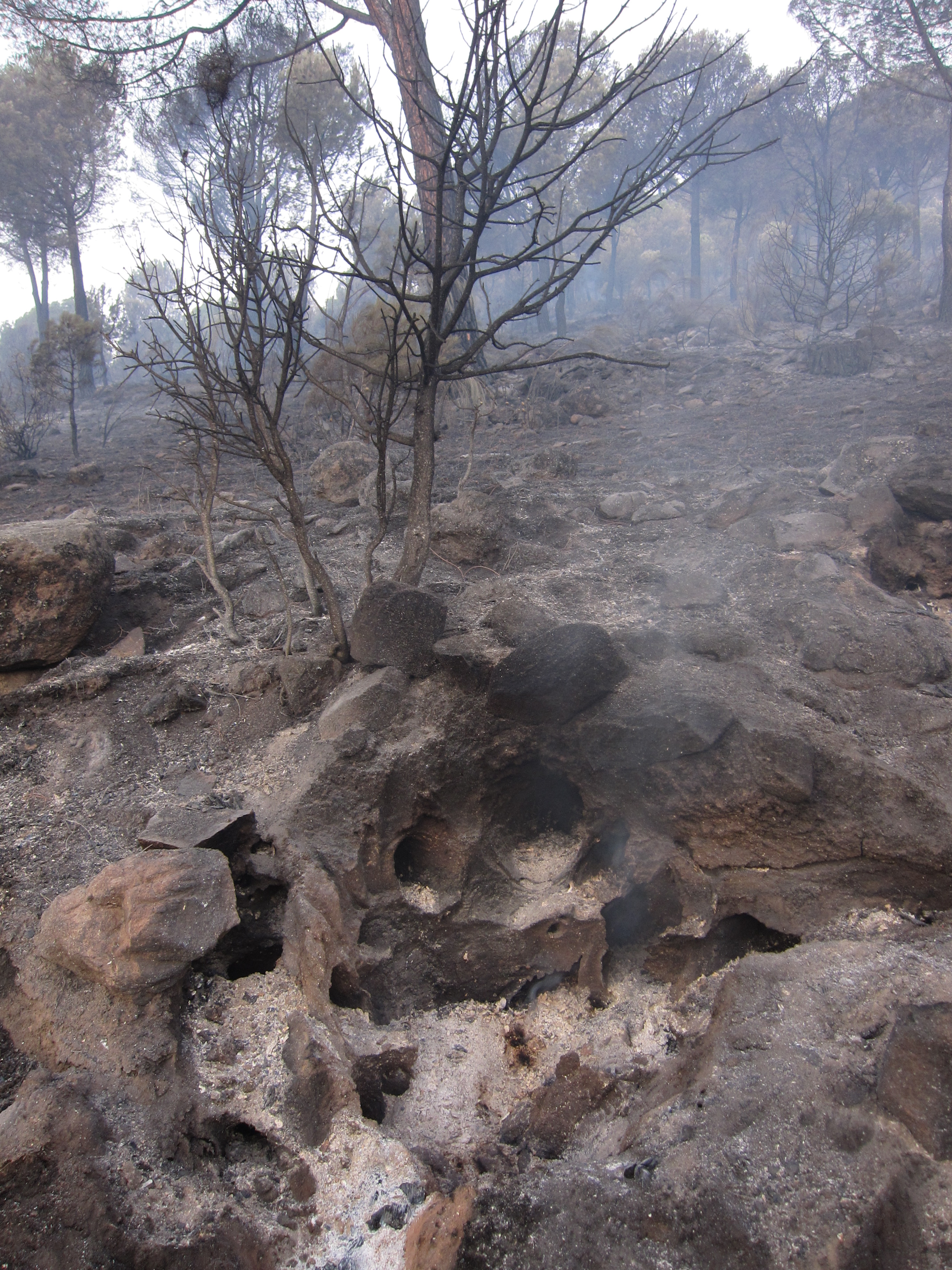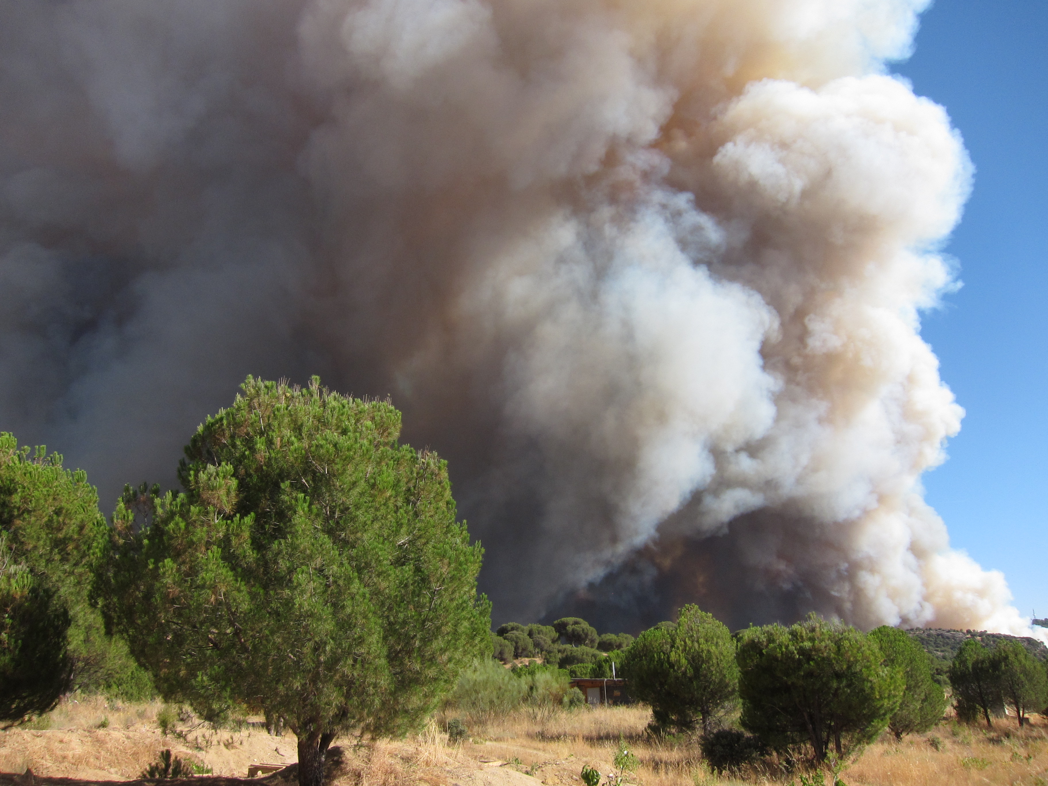 …oder besser die Wälder. Das war mein erstes Großfeuer ( die Nachrichten haben von 10 km Ausmaß gesprochen) aber was Feuer anbetrifft, sind die Spanier echte Profies. Da rückt neben der Feuerwehr auch gleich das Militär an. Es kann allerdings auch daran liegen, dass die NASA nebenan ein paar imposante Satellitenschüsseln stehen hat.